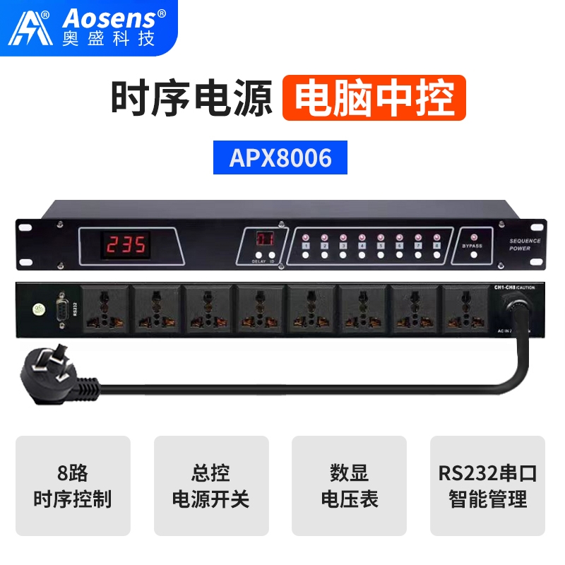 Aosens奧盛 APX8006 電源時序器 動作時序電源上電 中控電源控制 KTV舞臺會議控制器商用定制 8路