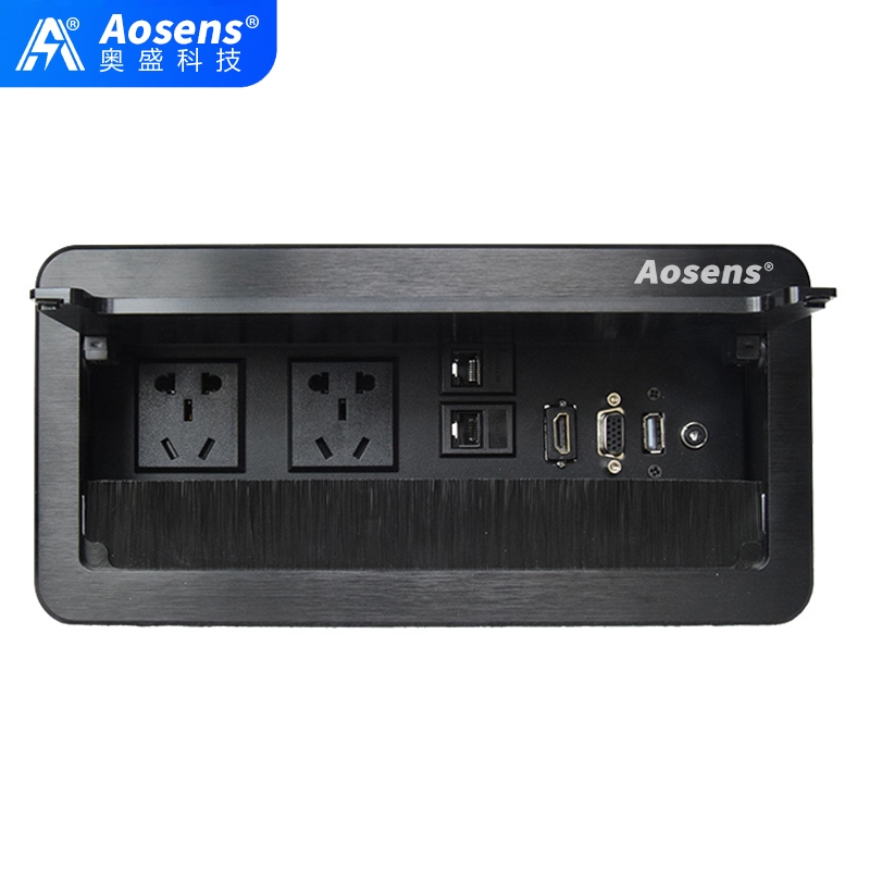 Aosens奧盛毛刷翻蓋桌面插座鋁合金拉絲面板五孔電源 雙網(wǎng)絡(luò) USB VGA HDMI AS-ZH-104B