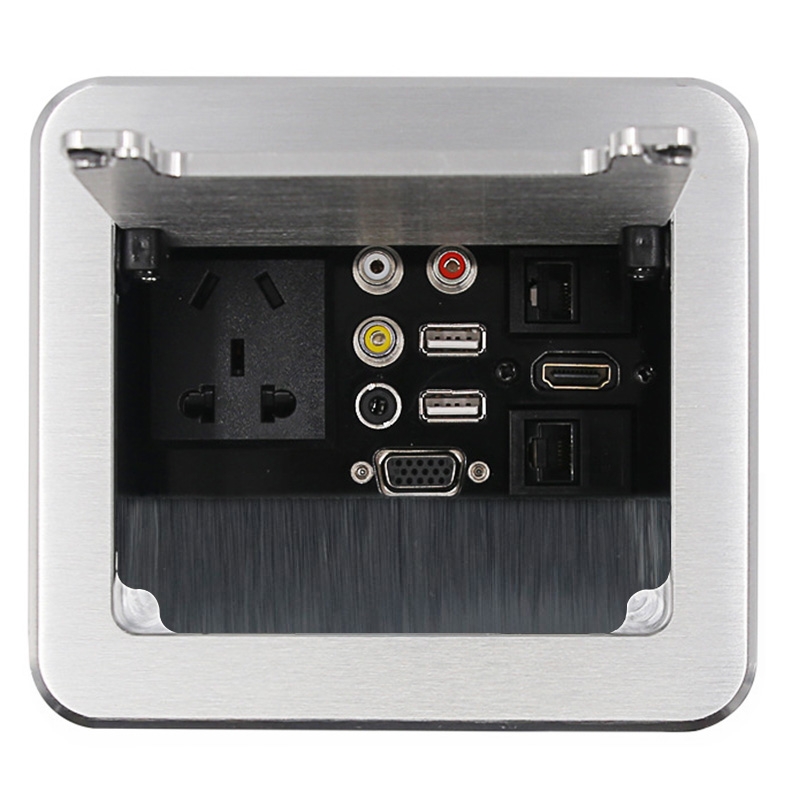 Aosens奧盛 毛刷翻蓋桌面插座 會(huì)議防塵多媒體桌插 五