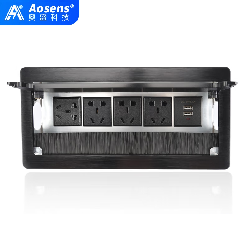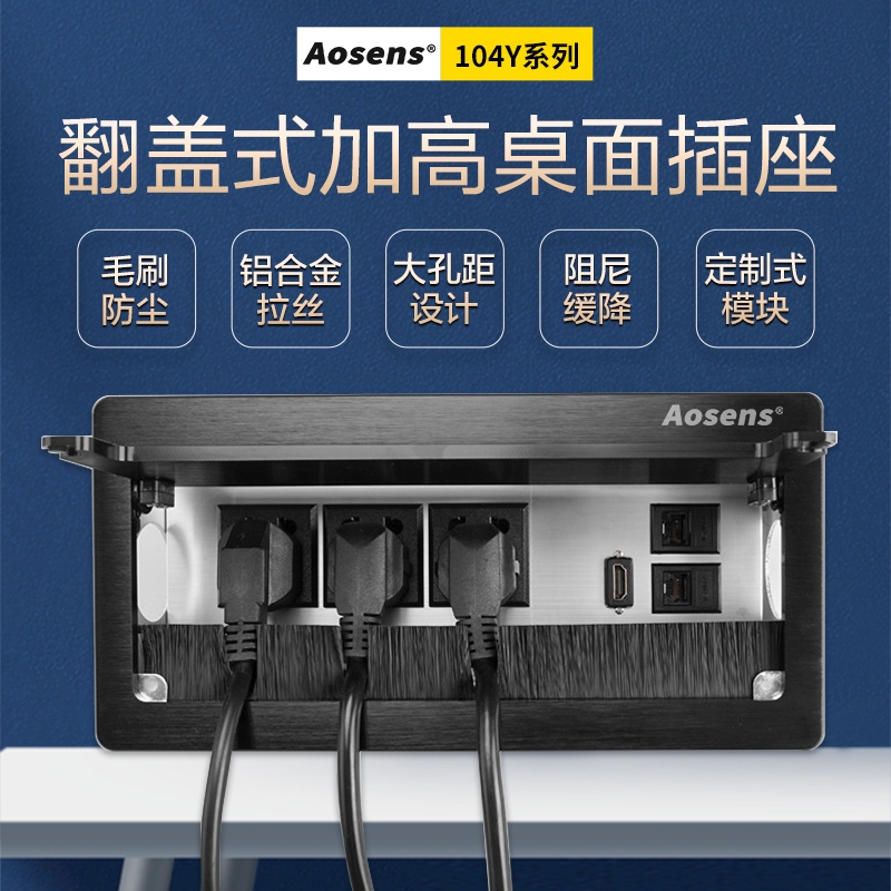 奧盛多功能桌面插座辦公桌電源線盒翻蓋毛刷嵌入臺面面板104Y系列