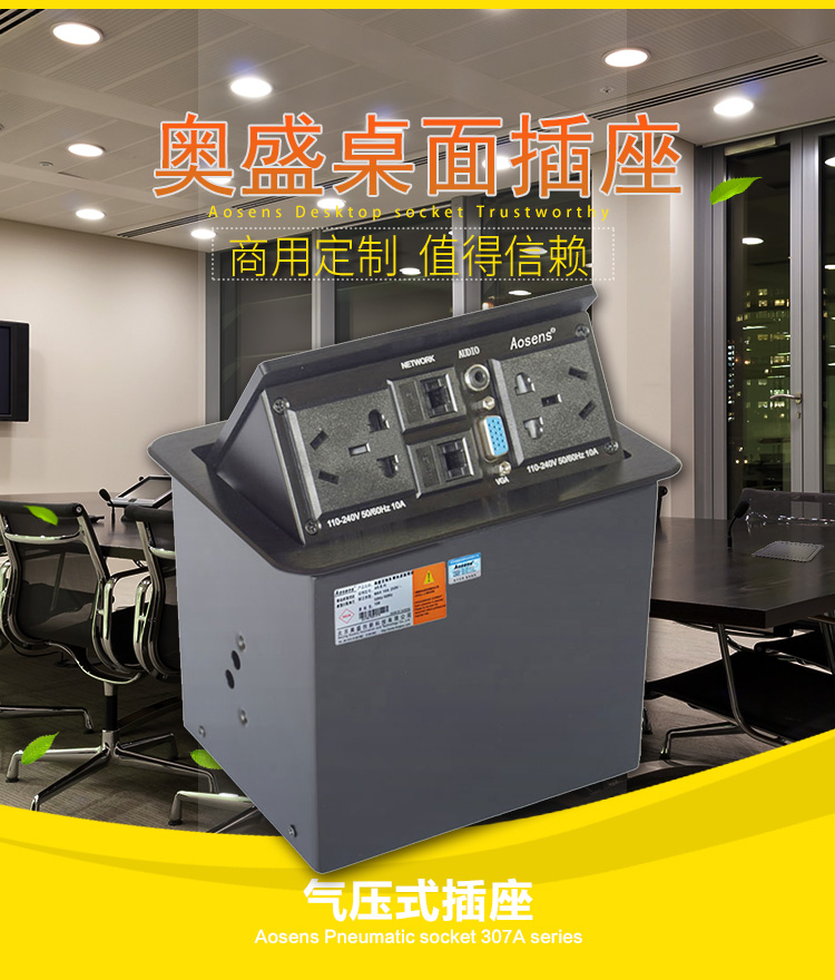 Aosens奧盛 彈起桌插帶線信息盒會議桌信息插座五孔電