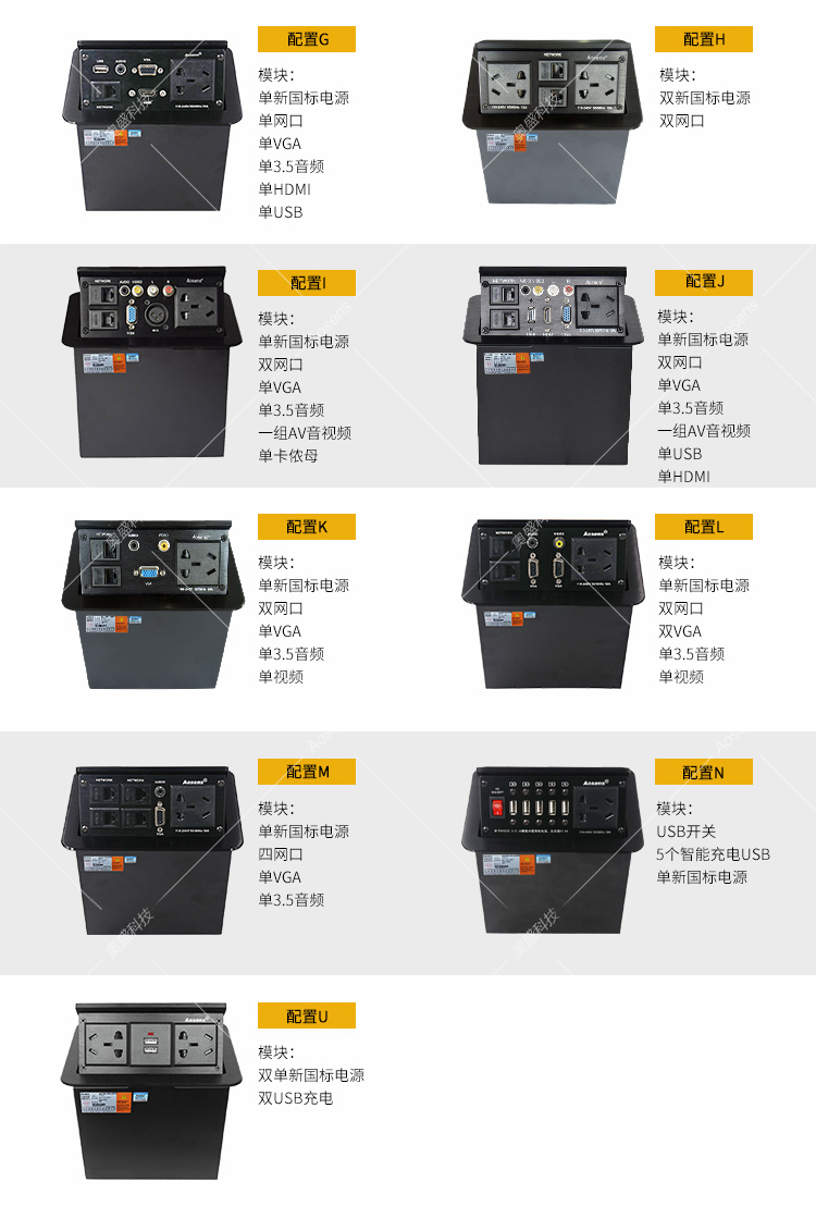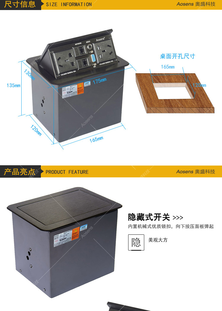 Aosens奧盛 彈起桌插信息盒會議桌插座 音視頻 VGA 卡儂
