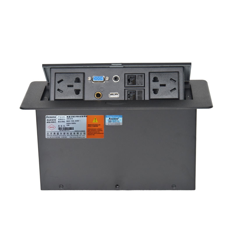 Aosens奧盛 彈起桌插信息盒會議桌插座 五孔電源 VGA 3.5音頻 USB 6.35話筒 雙網(wǎng)絡(luò) AS-ZH-500D