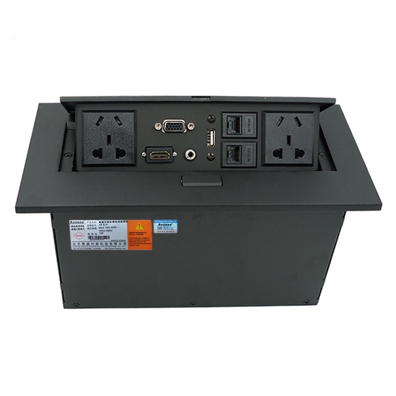 Aosens奧盛 彈起桌插信息盒會議桌插座 五孔電源 VGA USB HDMI 3.5音頻 雙網絡 AS-ZH-500E