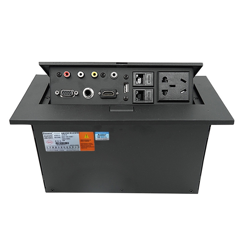 Aosens奧盛 彈起桌插信息盒會議桌插座 音視頻 3.5音頻 VGA 6.35話筒 HDMI USB 雙網絡 五孔電源 AS-ZH-500F