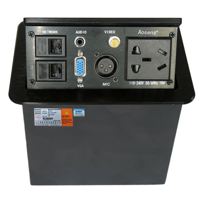 Aosens奧盛 氣撐彈起式氣壓氣動多媒體免焊桌面插座 雙網絡 3.5音頻 VGA 視頻 卡農公 五孔電源 AS-ZH-307D