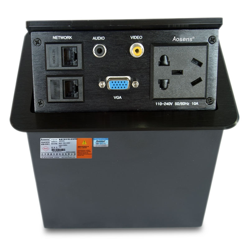 Aosens奧盛 氣撐彈起式氣壓氣動多媒體免焊桌面插座 五孔電源 雙網絡 視頻 VGA 3.5音頻 AS-ZH-307K
