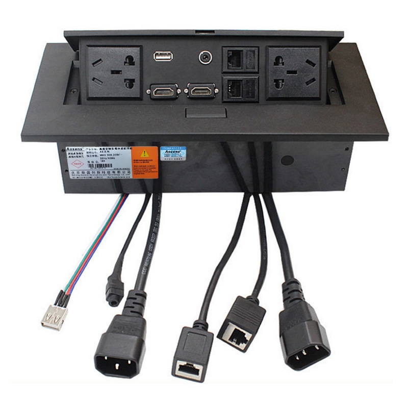 Aosens奧盛 彈起桌插帶線(xiàn)信息盒會(huì)議桌信息插座五孔電