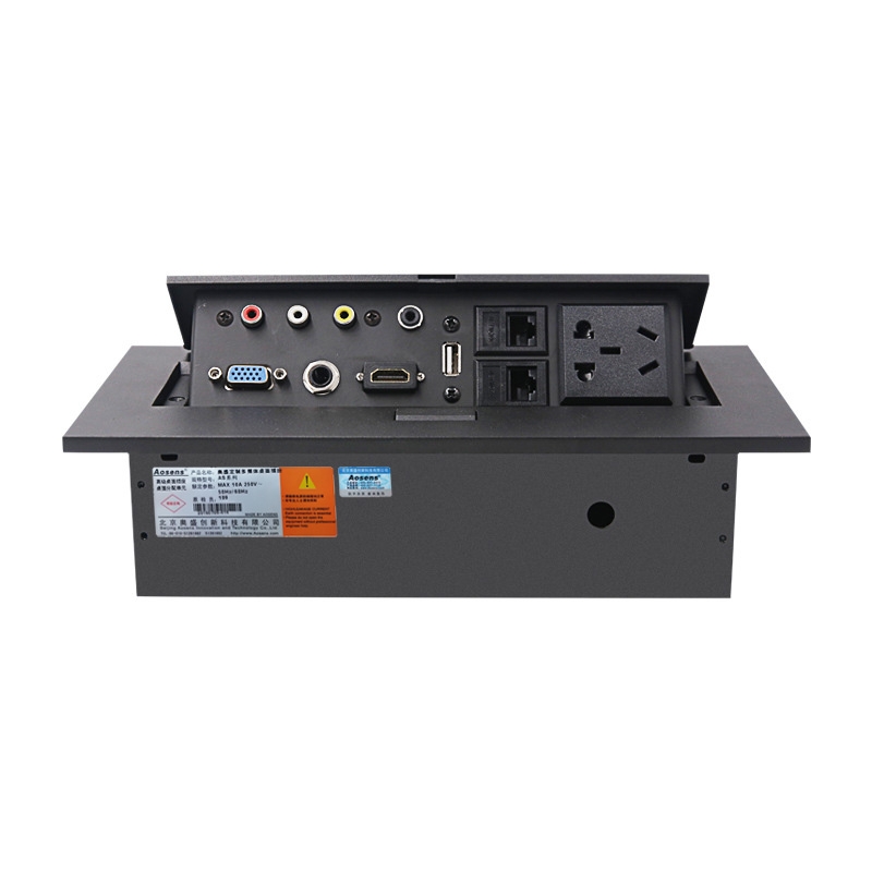 Aosens奧盛 鋅合金加長矮底盒多媒體桌面插座 信息插 五孔電源 USB 3.5音頻 VGA 網絡 6.35話筒 HDMI AS-ZH-200F