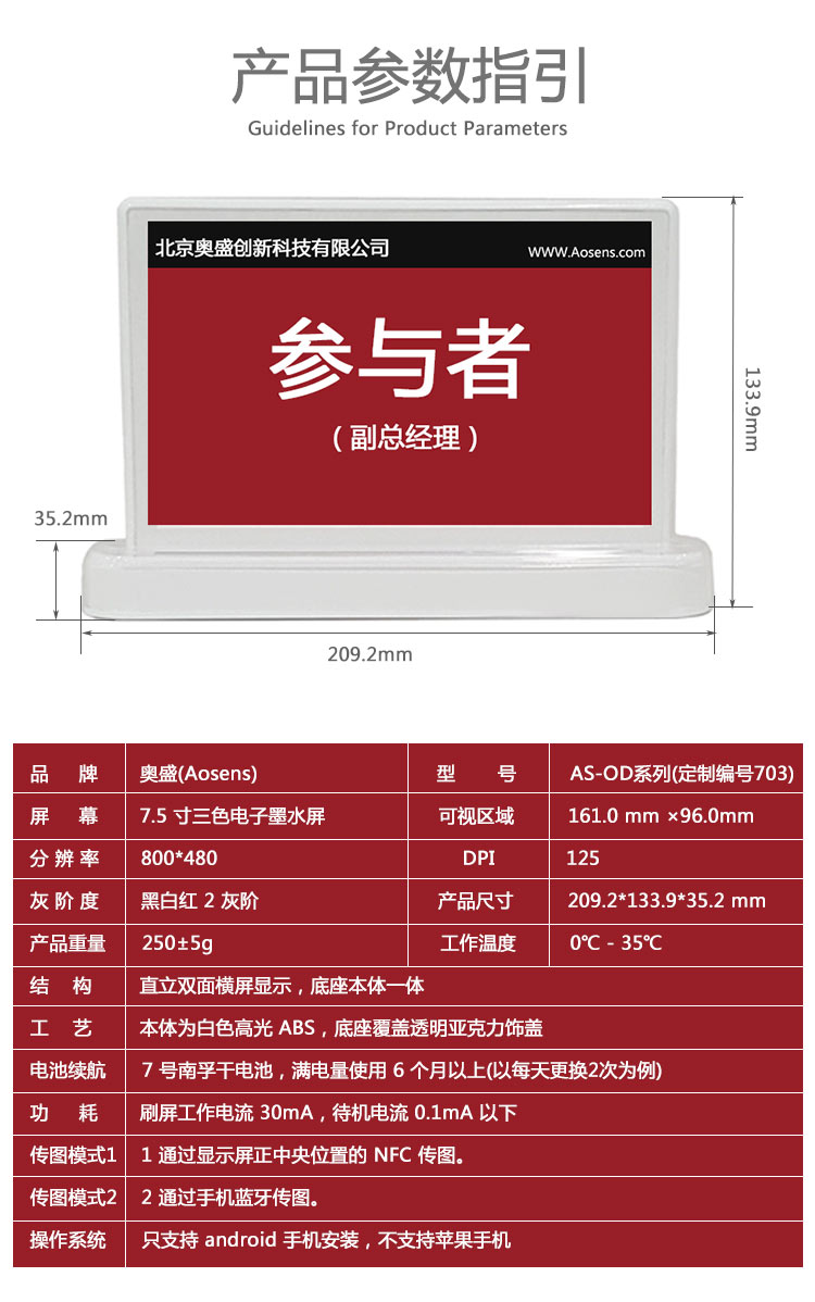 Aosens奧盛7寸雙屏電子桌牌支持WIFI組網(wǎng)可選POE供電桌
