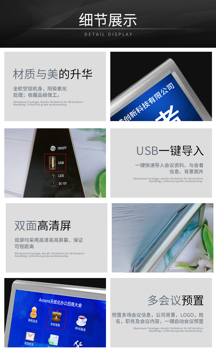 Aosens奧盛 11.6寸電子門牌 會議門牌信息顯示屏 支持定