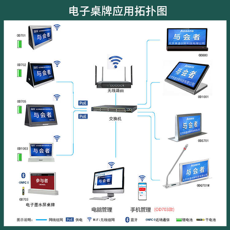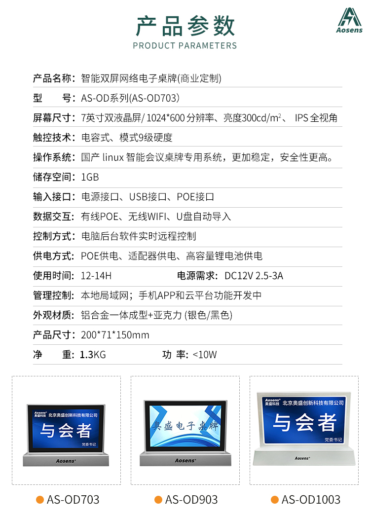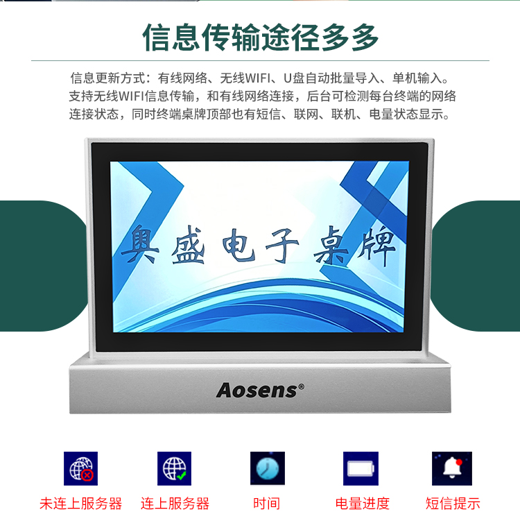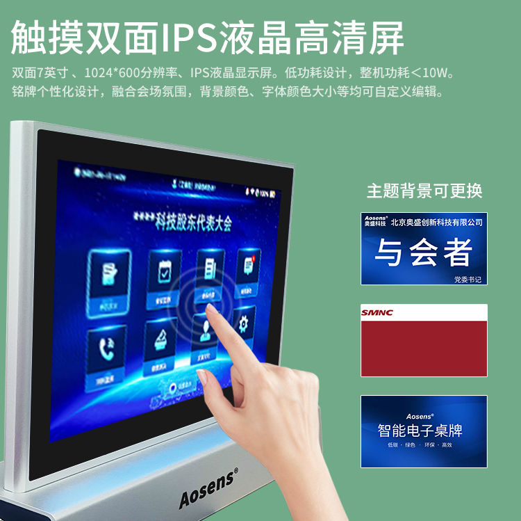 Aosens奧盛7寸雙屏電子桌牌支持WIFI組網可選POE供電桌