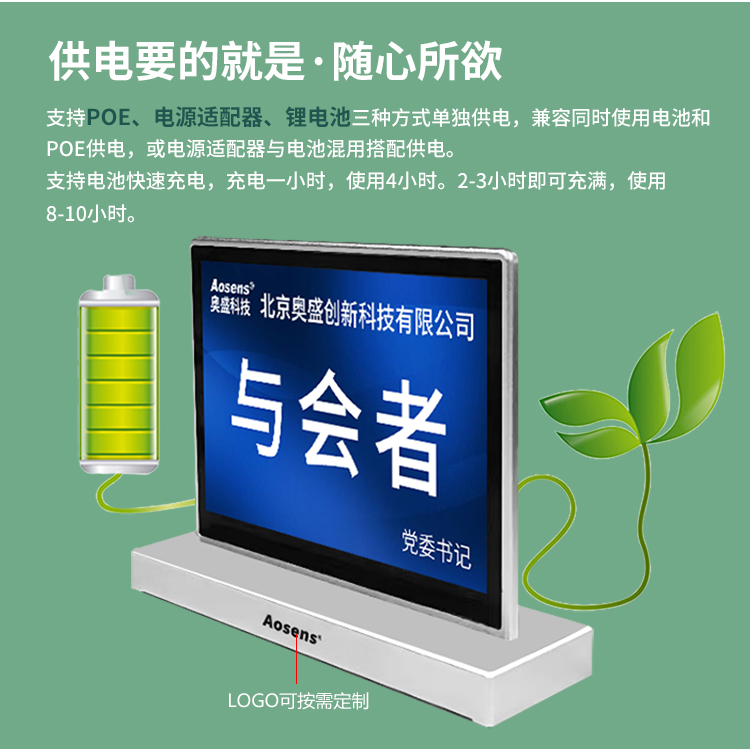 Aosens奧盛 雙面9英寸液晶屏電子桌牌 POE供電 電子桌簽 AS-OD9003
