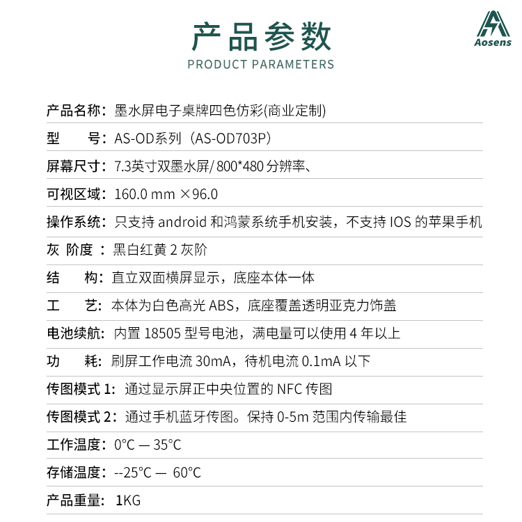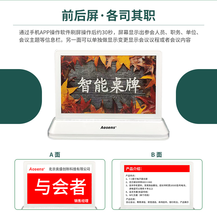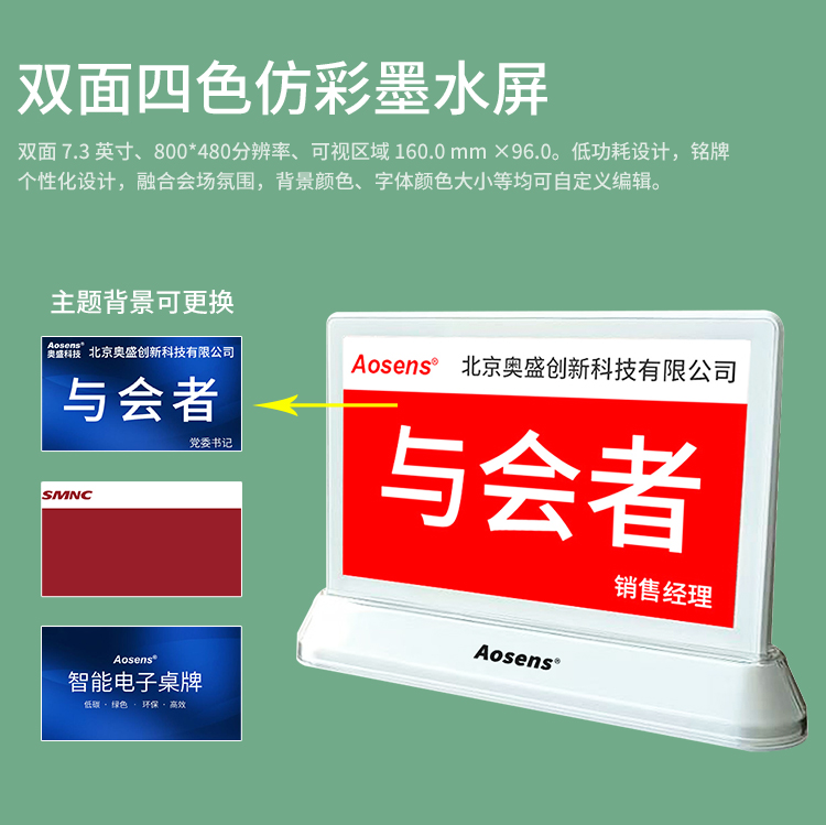 Aosens奧盛雙面電子墨水屏會議桌牌四色仿彩屏電子桌牌商用定制AS-OD703P